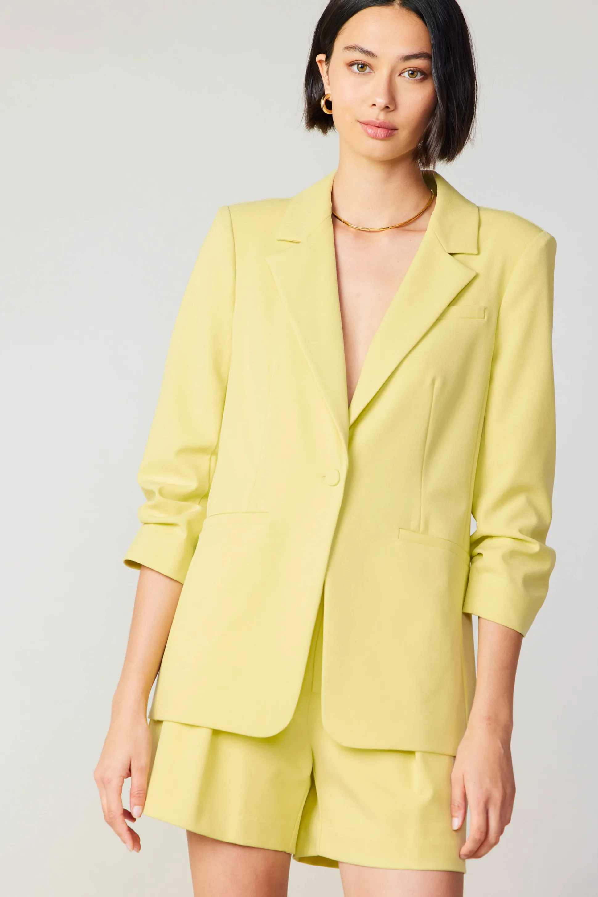 Embrace warmer days with these tailored shorts in a citrusy pastel hue. Designed to sit high on the waist, the pair has a tidy silhouette accented by crisp pleating and welt pockets at the back. Perfect for brightening your look, it’s a natural companion to our coordinating blazer.