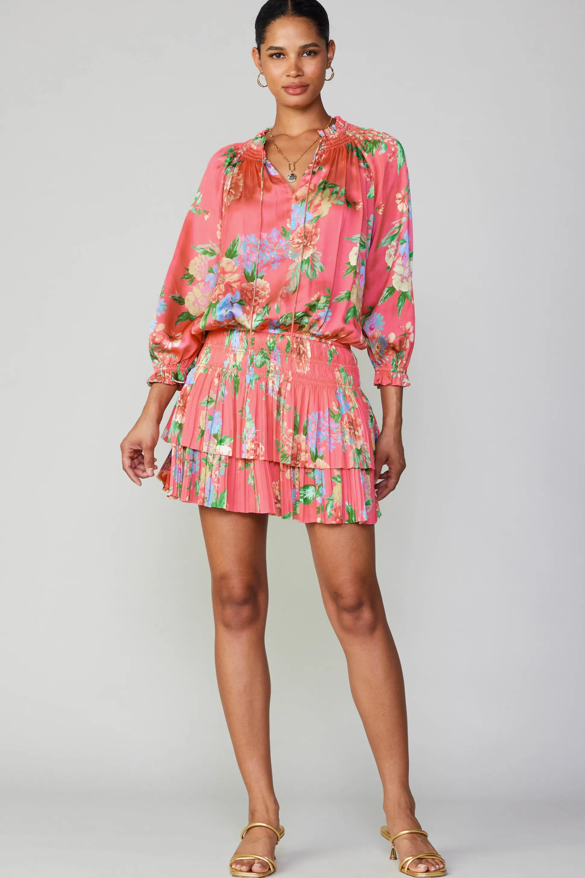 Our most popular mini dress, refreshed in a mood-boosting pink floral print. This best-selling style has a blousy fit with three-quarter sleeves and a comfortable dropped waist before falling to a pleated double-tiered skirt.