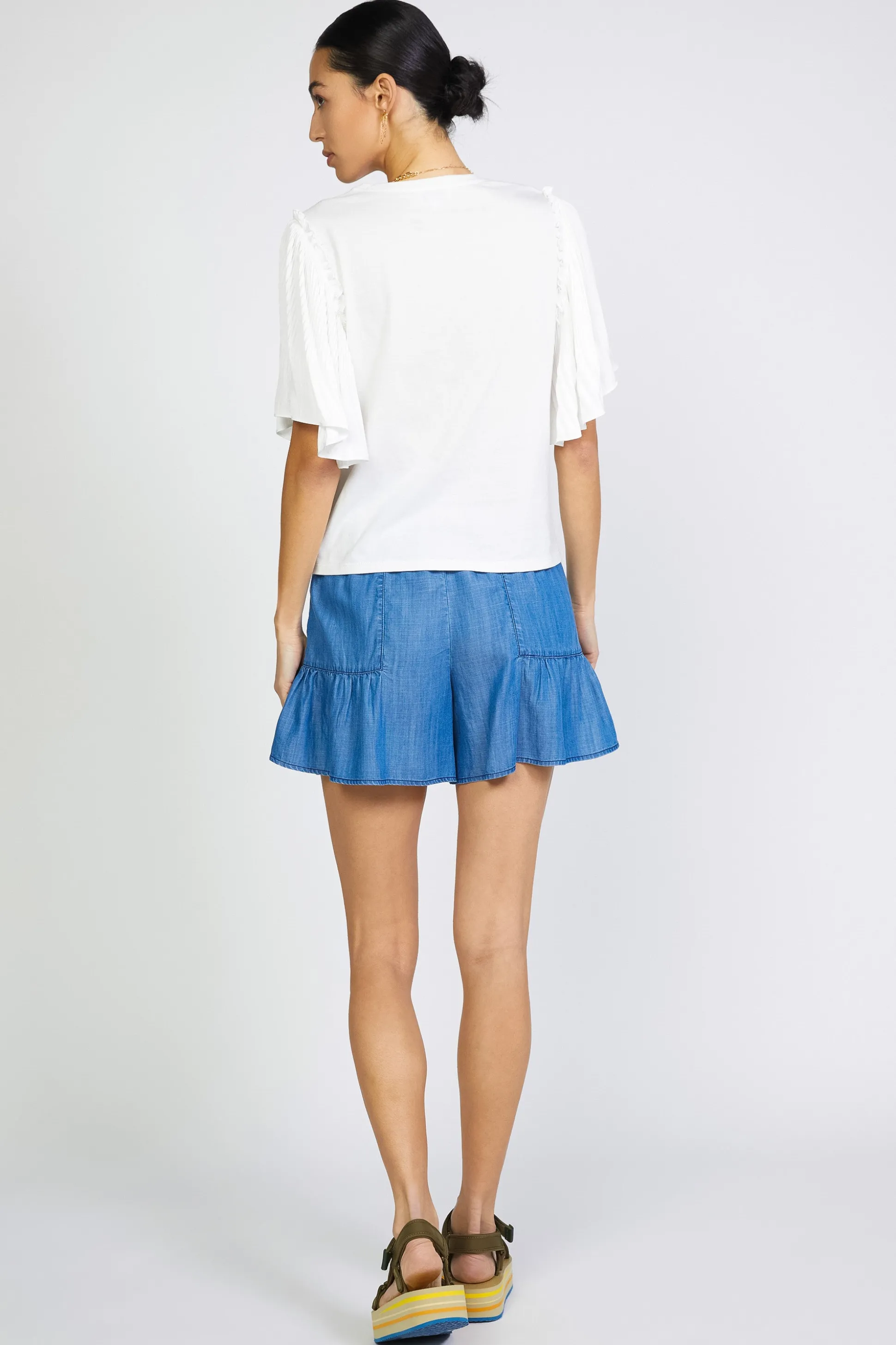 This sweater top has contrast pleated sleeves that flutter oh so beautifully. •Knit construction•Contrast pleated sl…