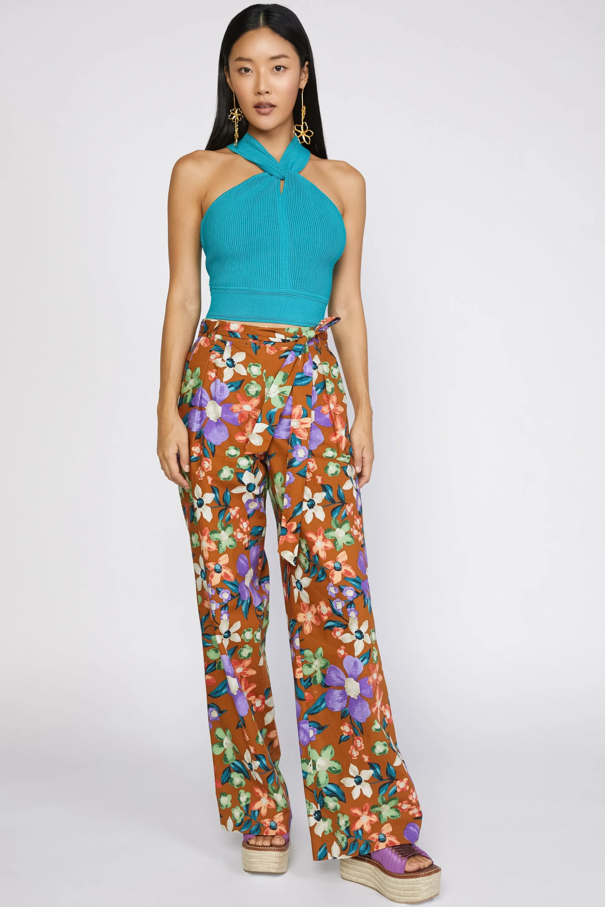 This knit halter top exudes an undeniable allure, cut from a figure-hugging stretch rib and featuring an open back with …