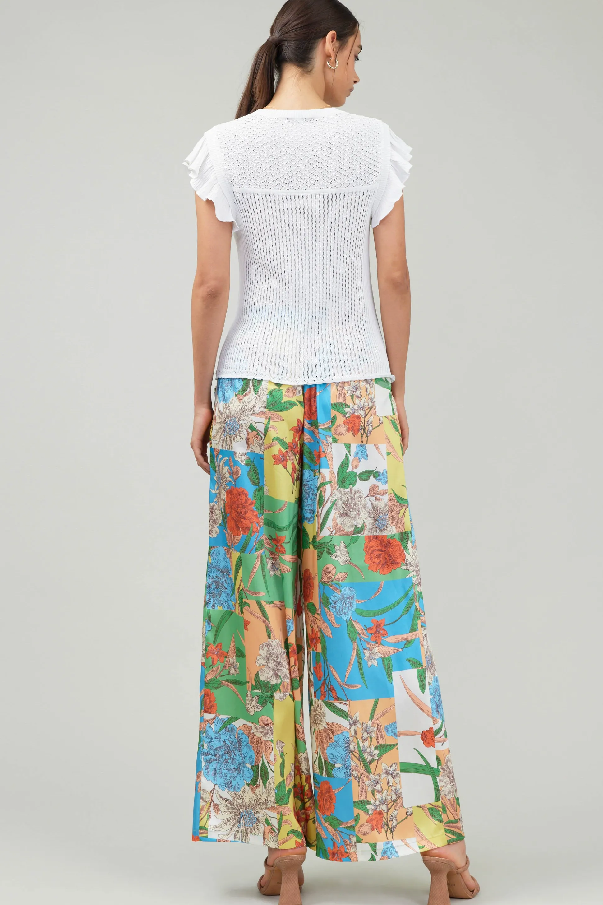 A lightweight sweater to take you from spring into summer. Knitted for a figure-hugging fit, this white crewneck style features a tonal mix of textures and woven ruffle sleeves.