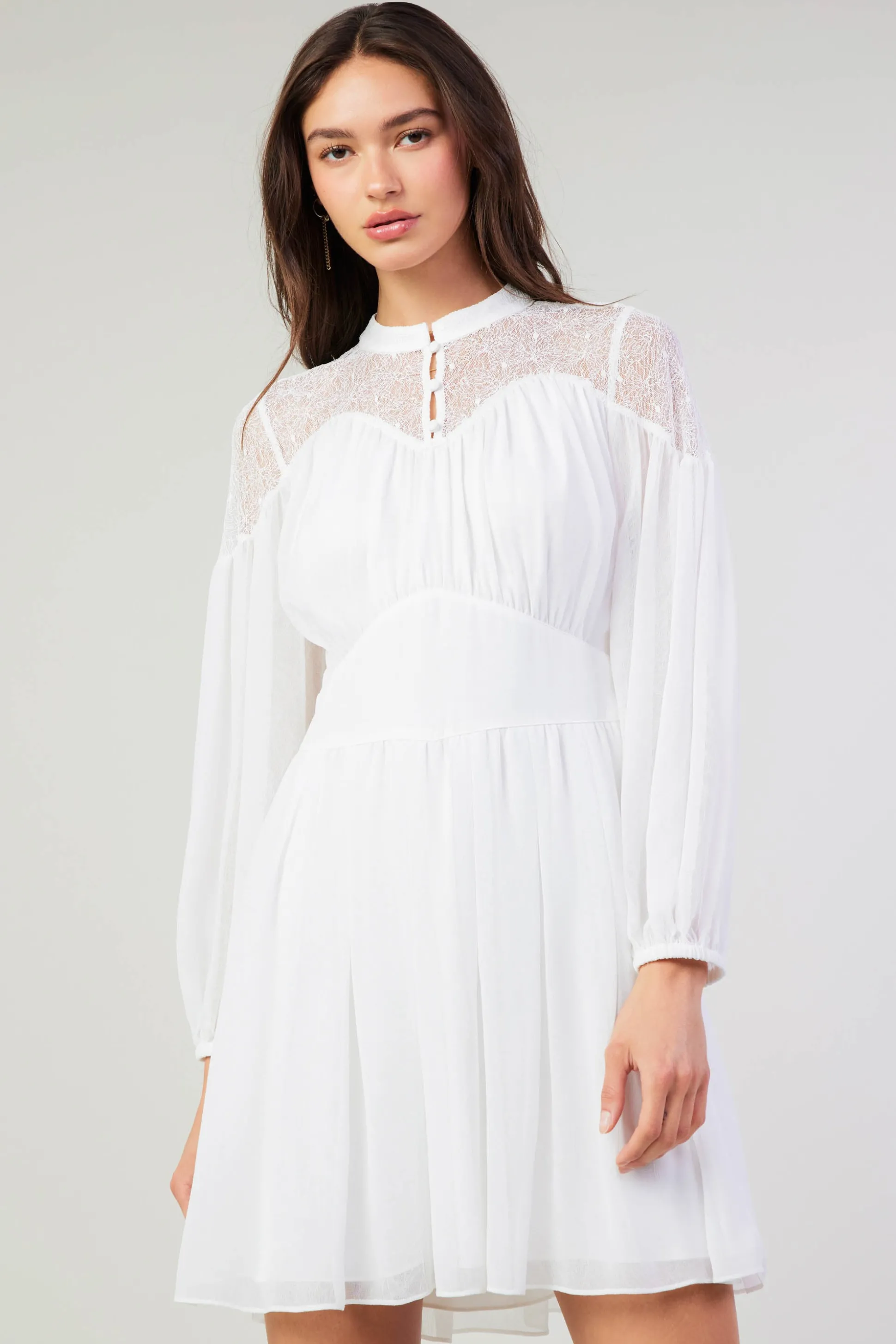 •Long sleeves with lace piecing