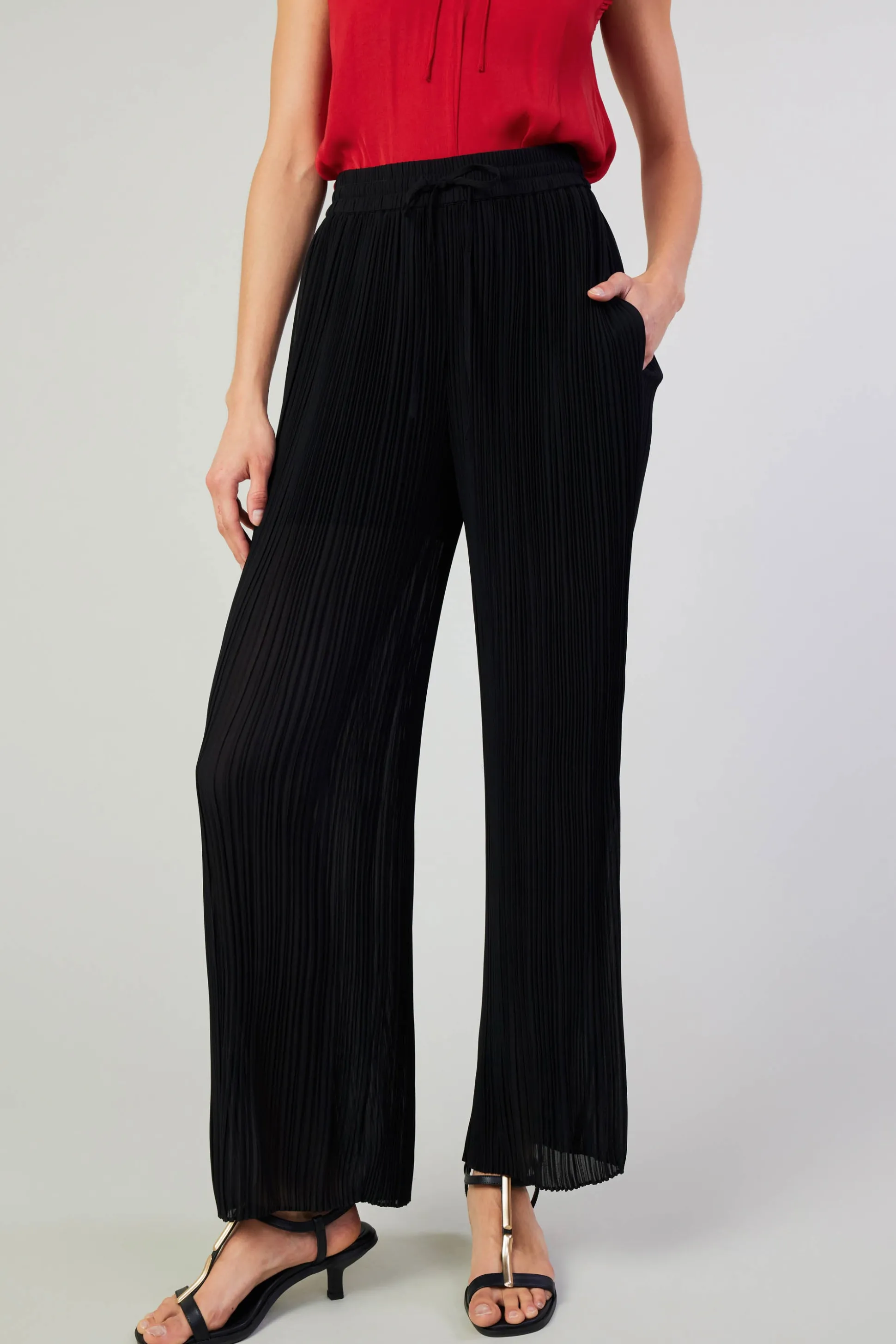 These pants may be comfortable (see the elasticized waist), but all those little pleats make the pair feel straight up fancy.