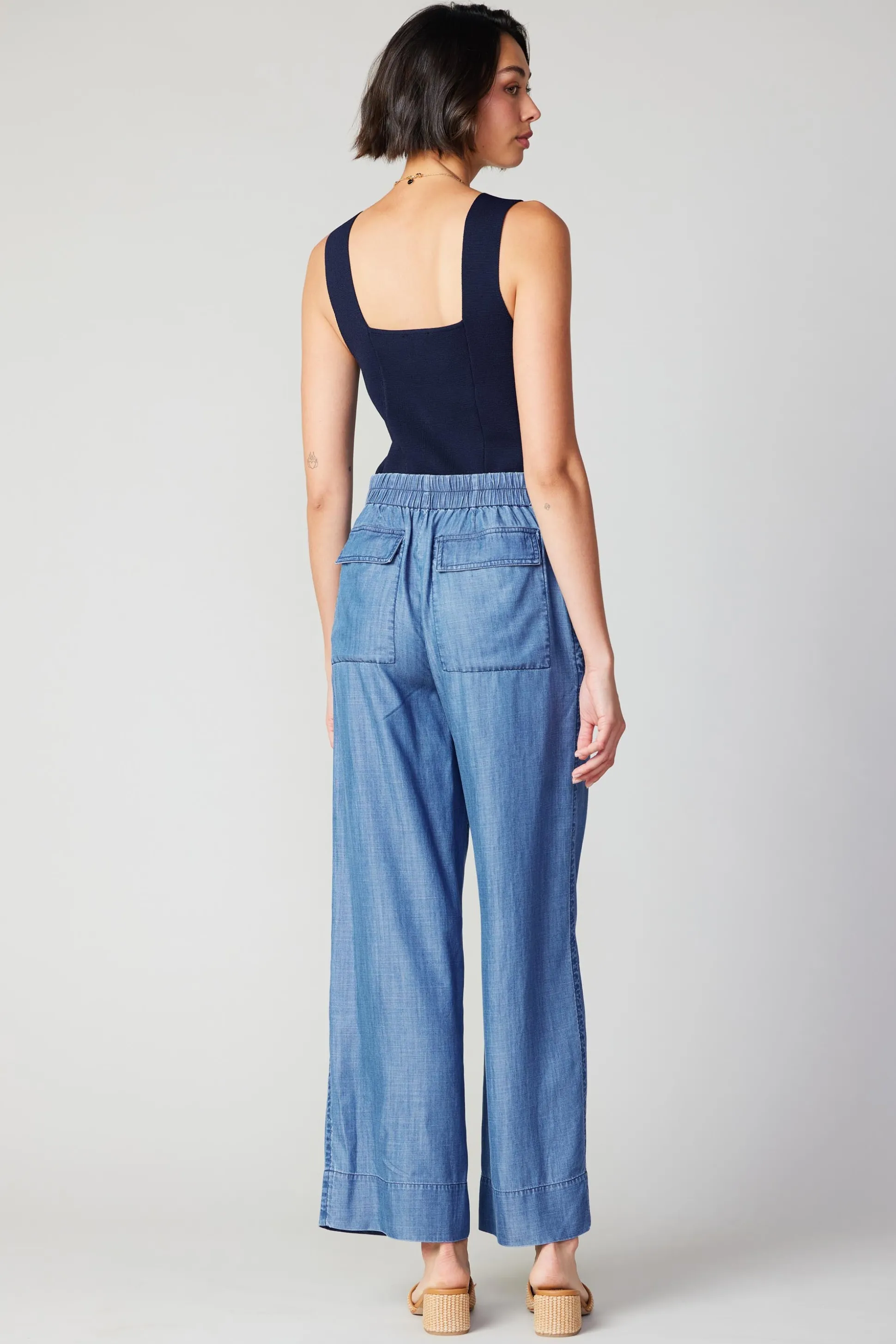 These wide-leg pants have a high-rise waist and three-dimensional utility pockets at the front. They’re lightweight with a gently crinkled texture for a look that’s laid-back and low maintenance. Finished with a comfortable elasticized back waistband and flap pockets.