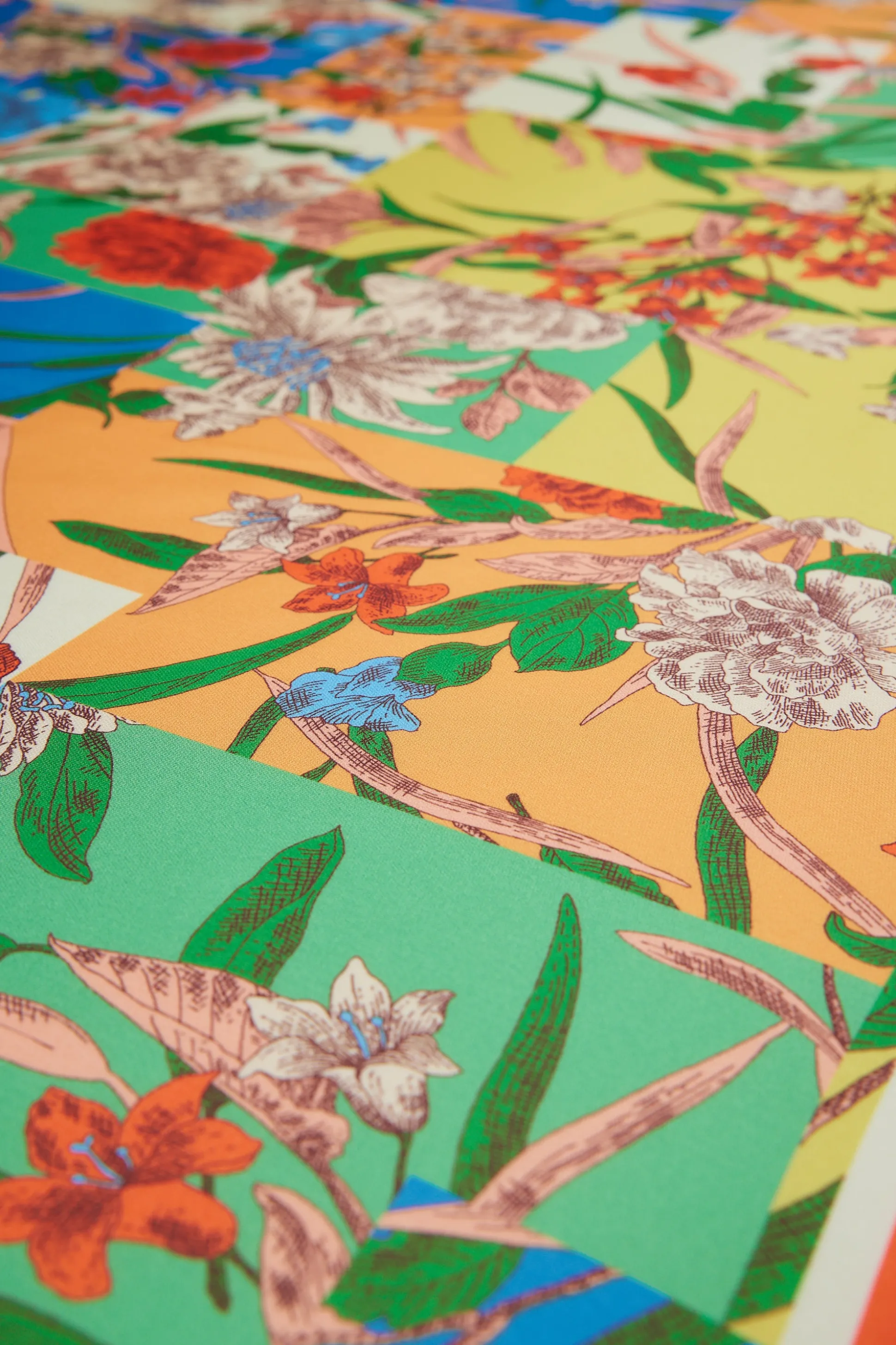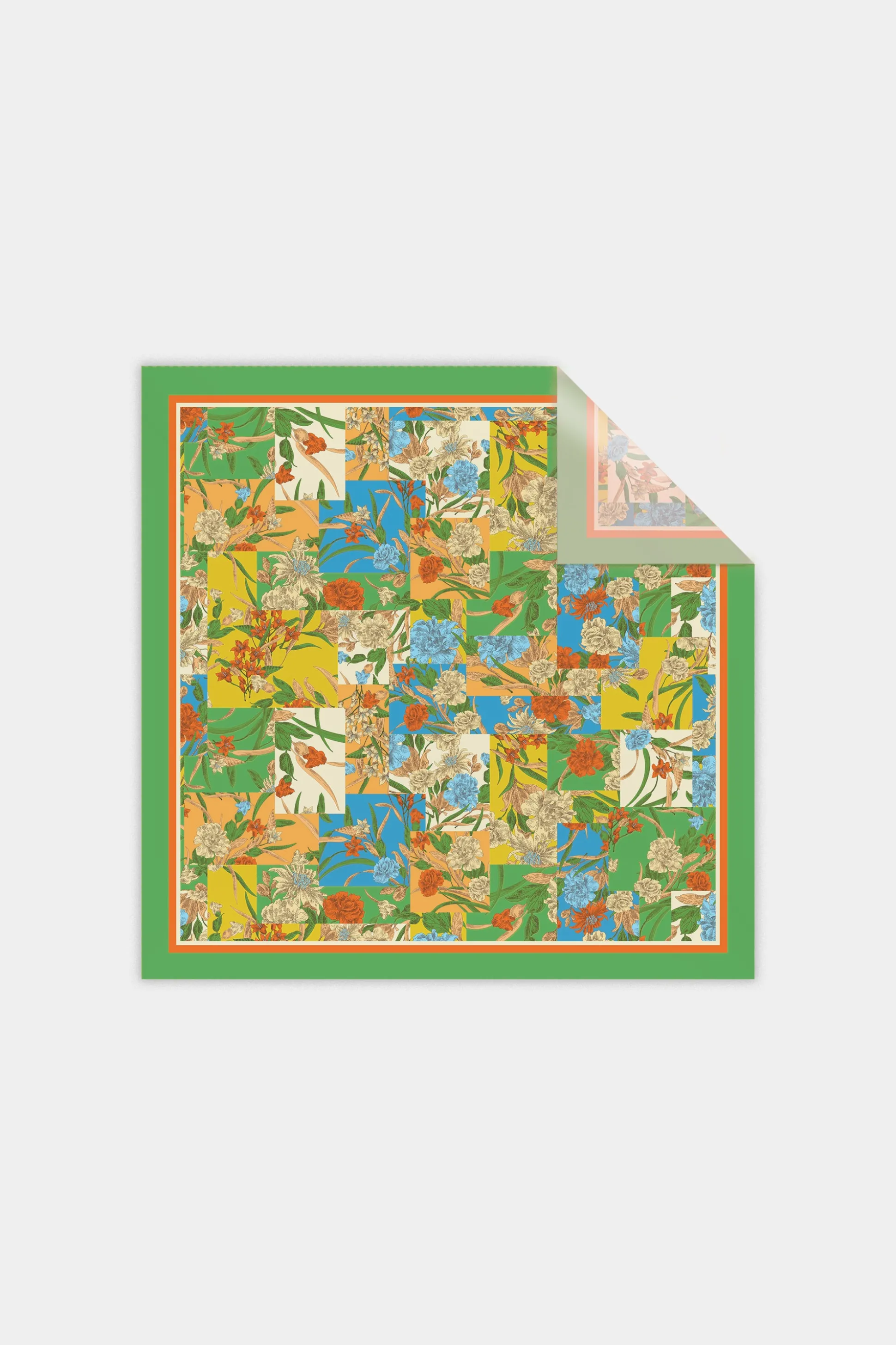 • Printed scarf cut in a large square size perfect for endless possibilities with enough room to style to your liking.