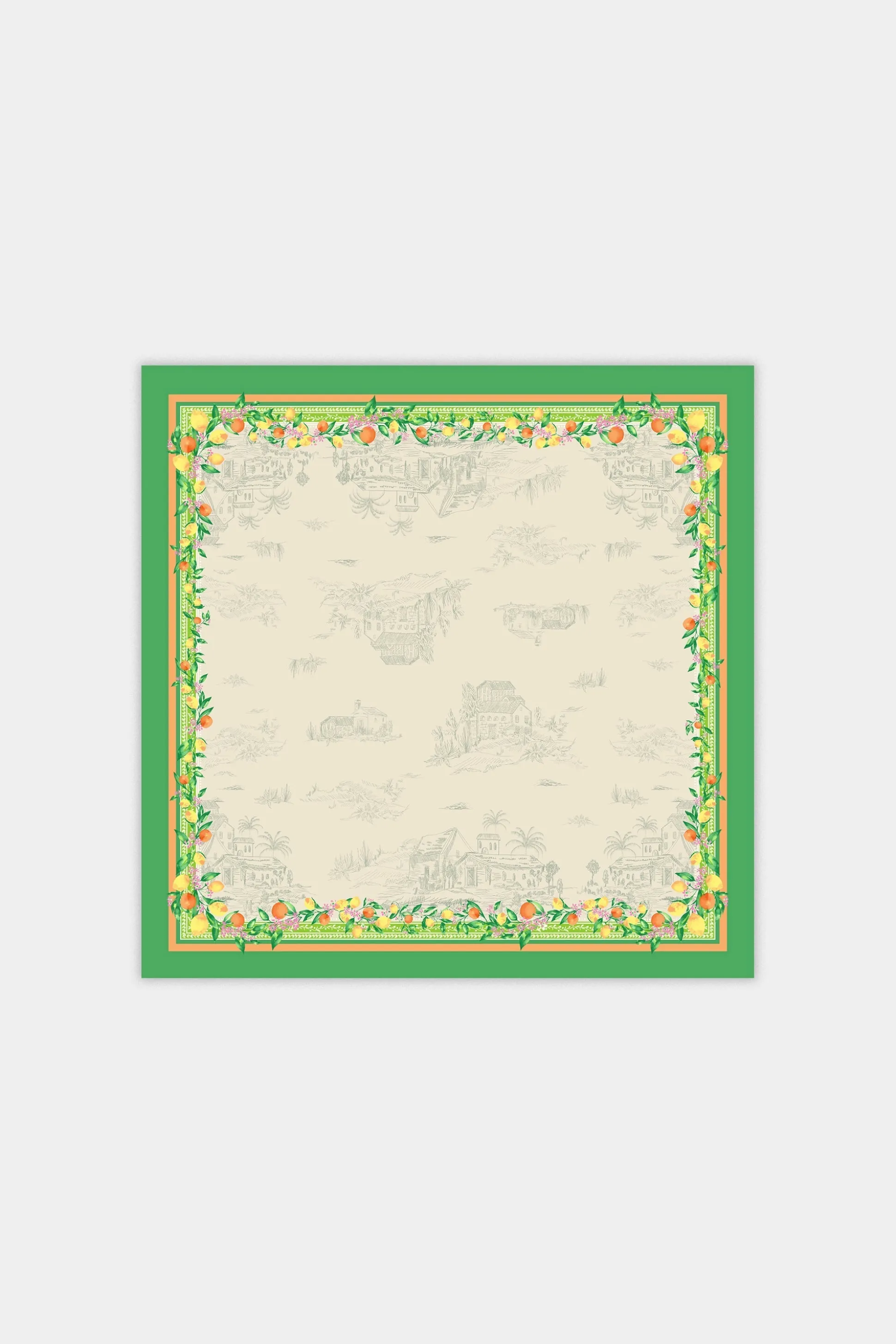 • Printed scarf cut in a large square size perfect for endless possibilities with enough room to style to your liking.