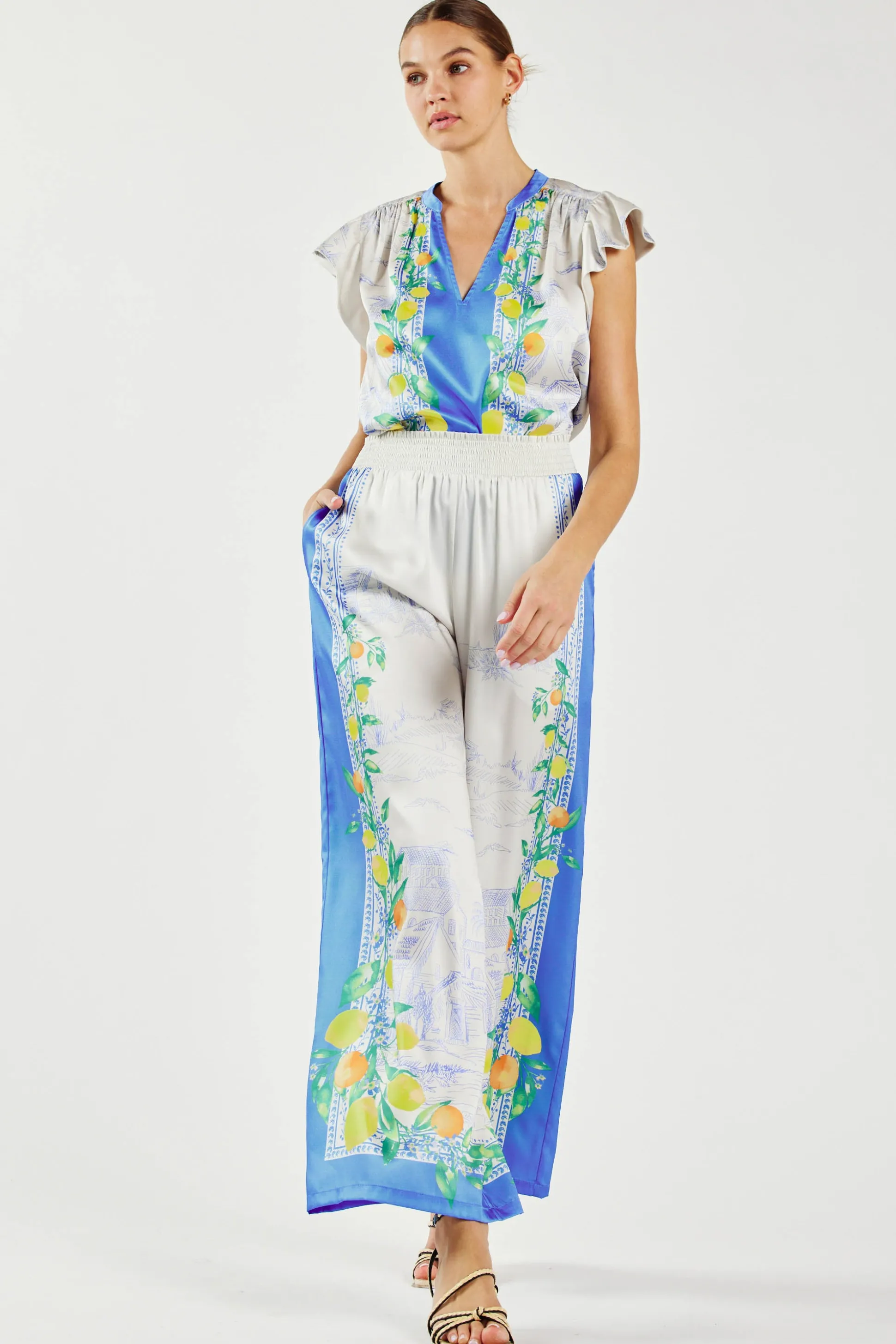 Channel a vacation state of mind in these flowy wide-leg pants. Accented by a smocked waist, the loose, easy shape is perfect for lounging in the sun. Small inseam : 30″