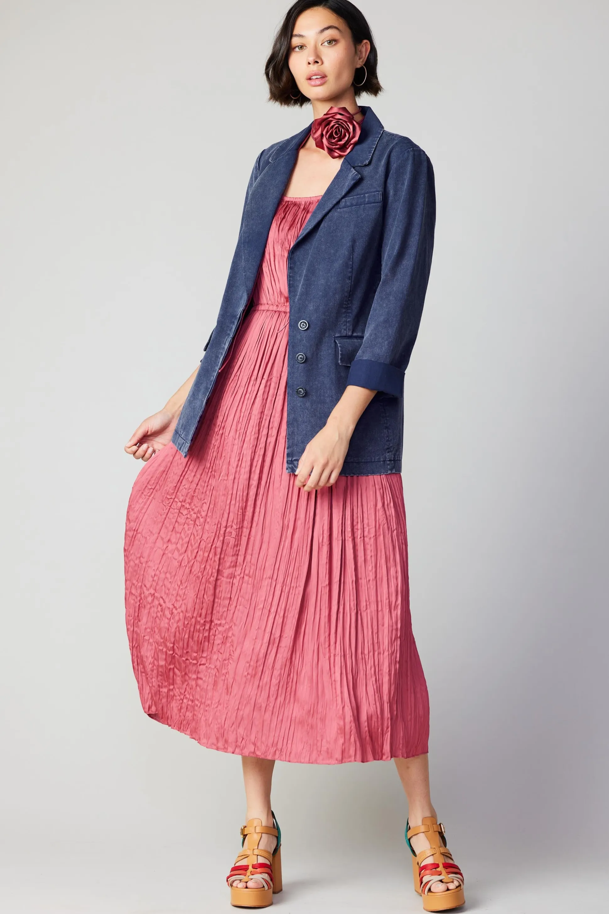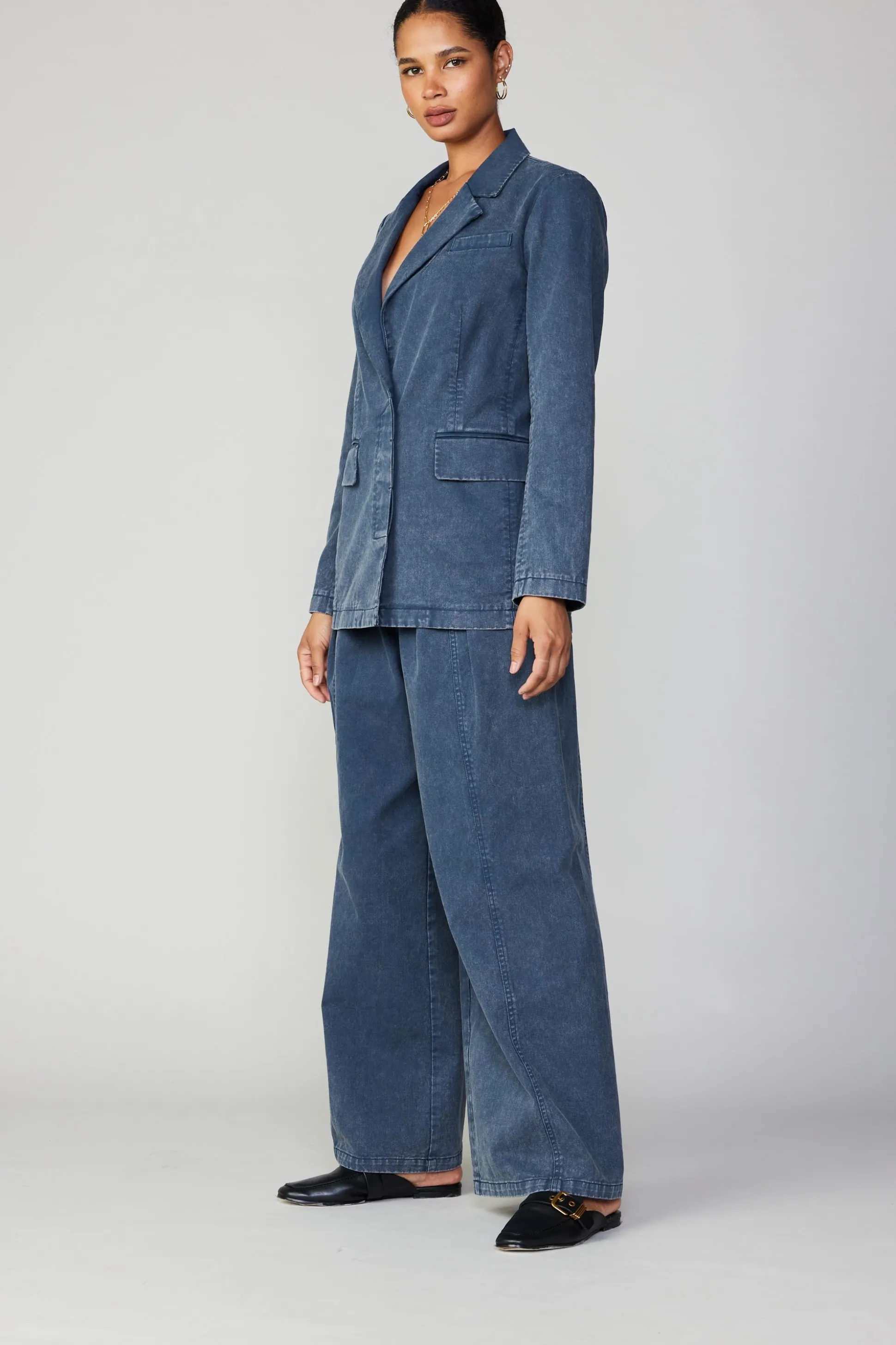 This denim blazer comes in washed-down, faded indigo for a vintage effect. It’s got a slight workwear feel, while classic tailored details keep the look polished.