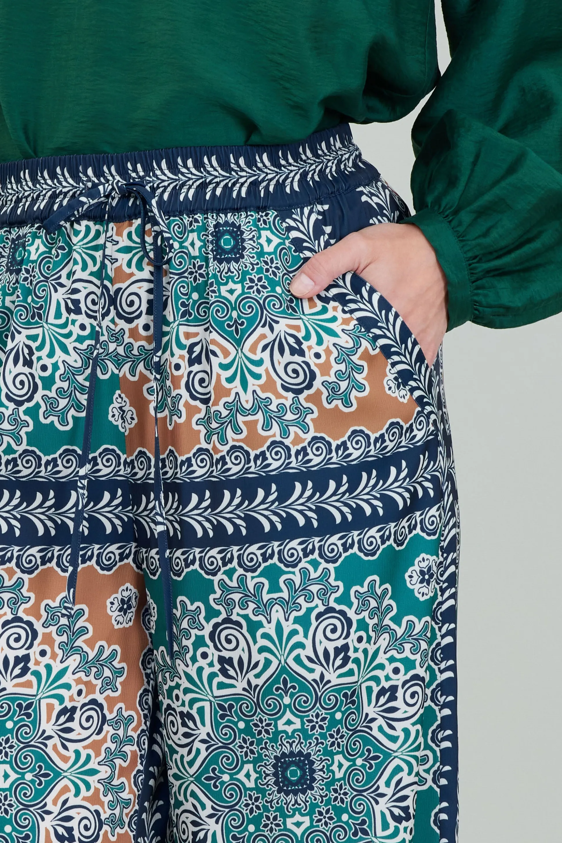 Designed with a comfortable waistband and a relaxed silhouette, these wide-leg pants are the perfect getaway staple. Offering the comfort of slinky pajamas but elevated by an ornate print, they’re easy to wear and effortlessly stylish. inseam small = 30″